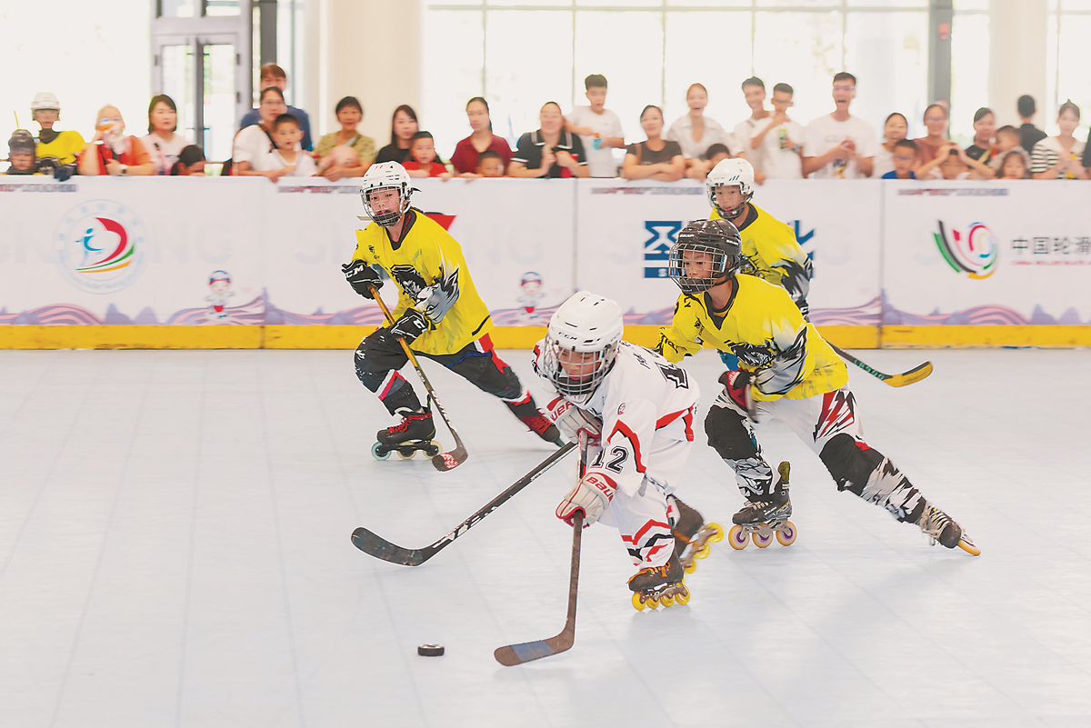 1日,在2023年“海峡杯”两岸轮滑交流赛单排轮滑球比赛中,两岸小选手同台竞技。