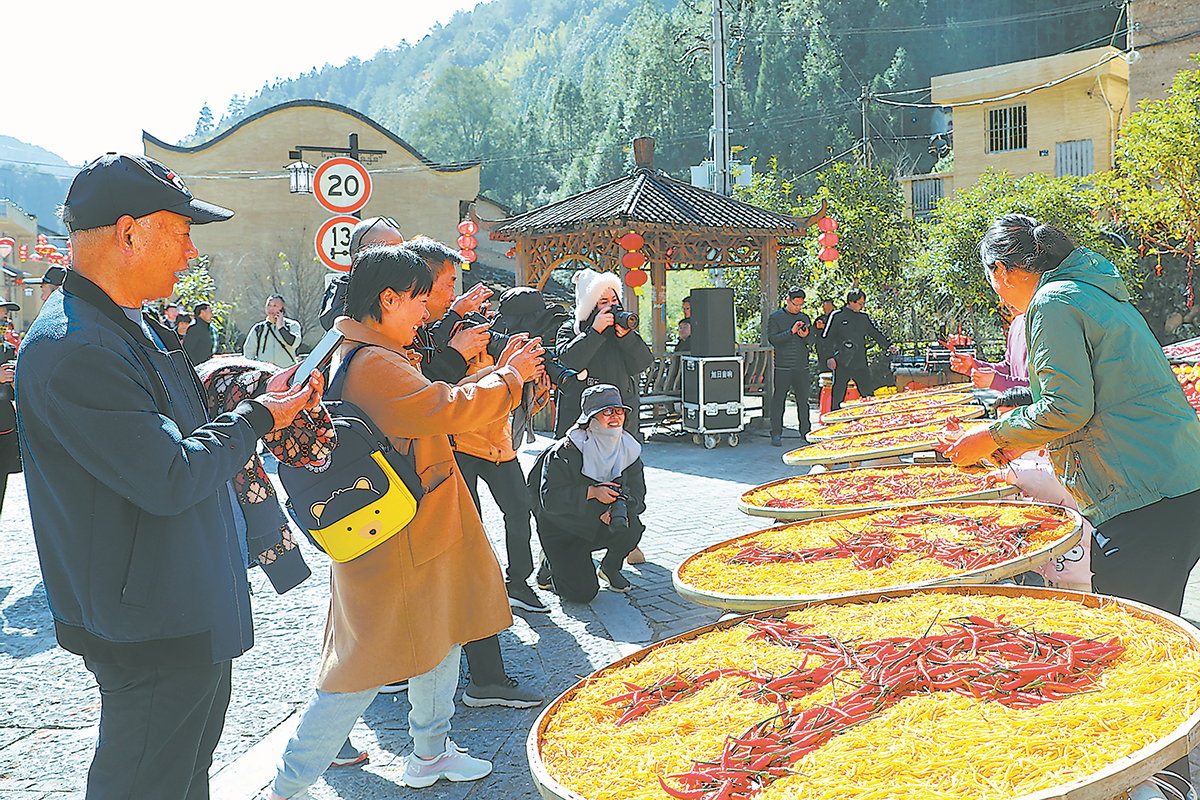 日前,“生态鲤乡·周宁冬晒”暨礼门乡第六届文化旅游节在周宁县礼门乡常源村举行。传统村落的秀美风光,乡愁“丰”味的“晾晒”,成了周宁冬日里的一道独特风景,吸引了各地摄影师和游客前来拍摄、游玩。据了解,常源村是第五批中国传统村落之一,历史文化底蕴深厚,周边旅游资源丰富。未来,周宁县将以市级“金牌旅游村创建”为抓手,完善村庄规划,强化旅游配套,打造乡村旅游品牌,推进周宁全域旅游发展。(记者 王毅 通讯员 汤文娟 刘志玮 摄影报道)