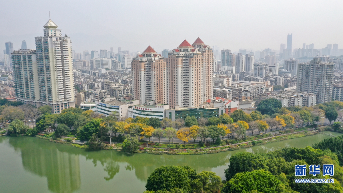 这是在福州市鼓楼区湖滨路拍摄到的“阳春秋韵”景观(3月21日摄,无人机照片)。新华网 肖和勇 摄