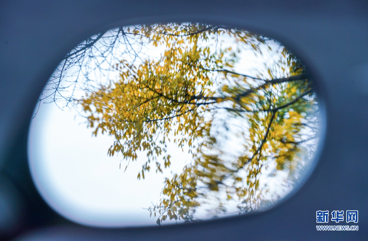 这是从电动车后视镜中拍摄到的“春日秋韵”(3月21日摄)。新华网 肖和勇 摄