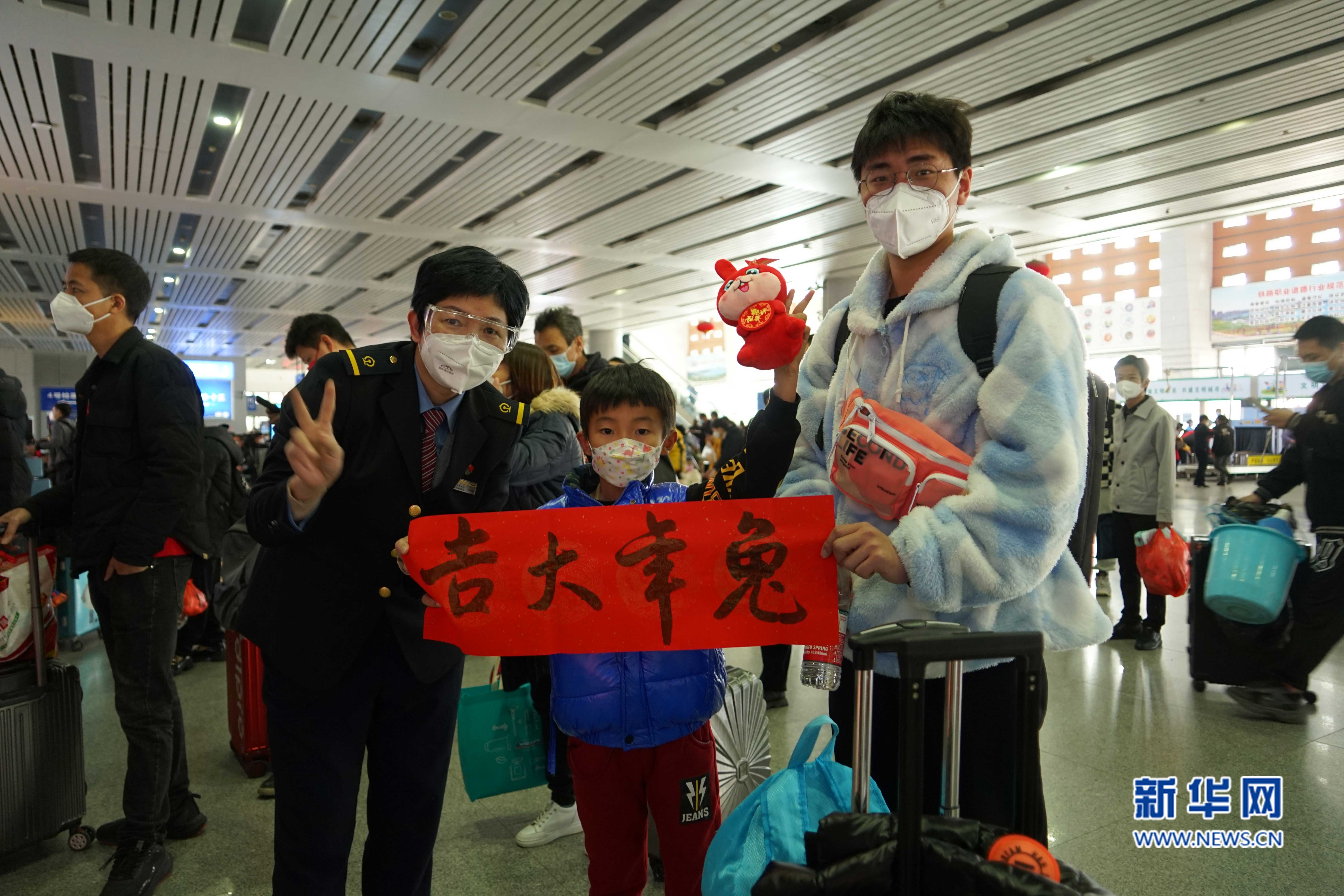 1月7日,2023年春运拉开帷幕。铁路部门开展“平安春运、有序春运、温馨春运,让旅客体验更美好”主题活动,全力为广大旅客营造温馨、安全的出行环境,让“福”伴旅客归家路。(刘默涵 江曲 刘理军 万宇 李楠 魏志伟)
