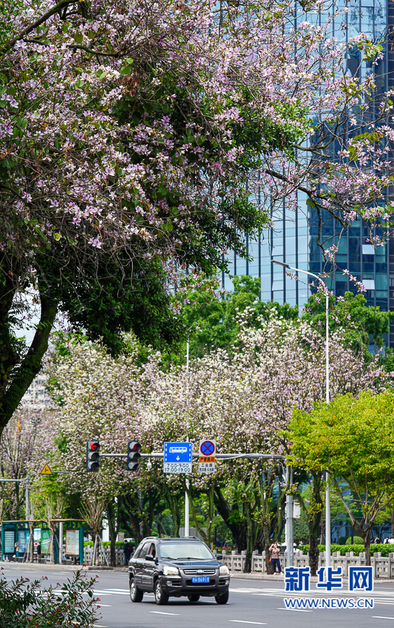 这是在工业路上拍摄到的羊蹄甲。新华网 肖和勇 摄
