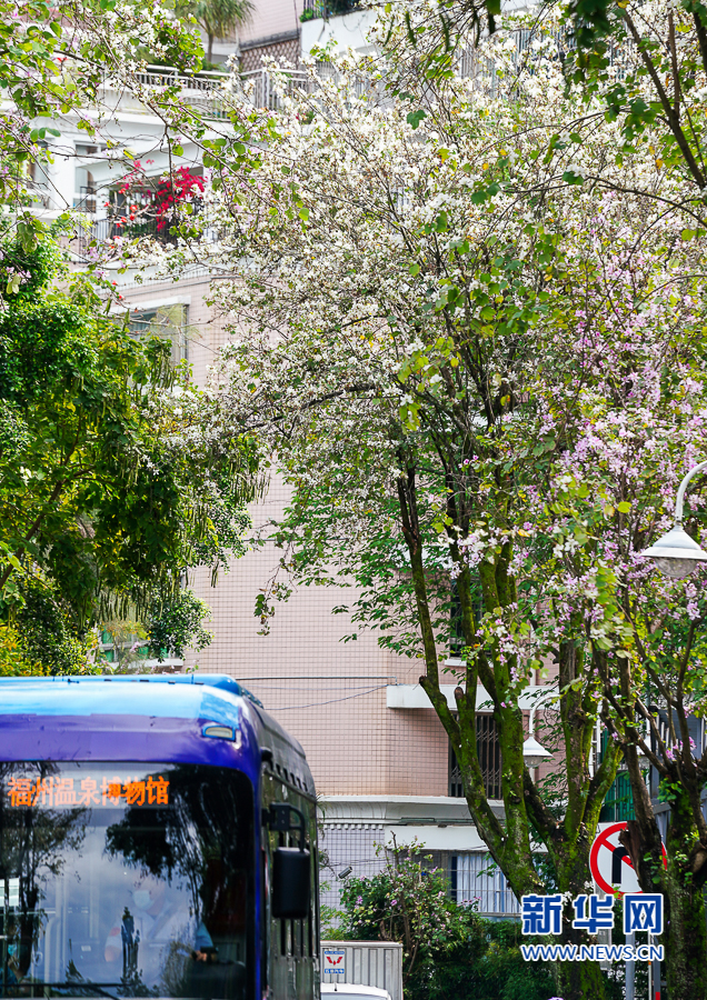 福州西湖公园附近的湖头街,羊蹄甲盛放。新华网 肖和勇 摄