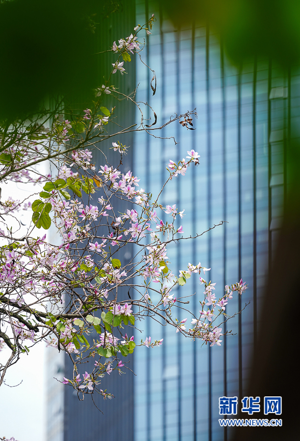 4月19日拍摄到的羊蹄甲盛放。新华网 肖和勇 摄