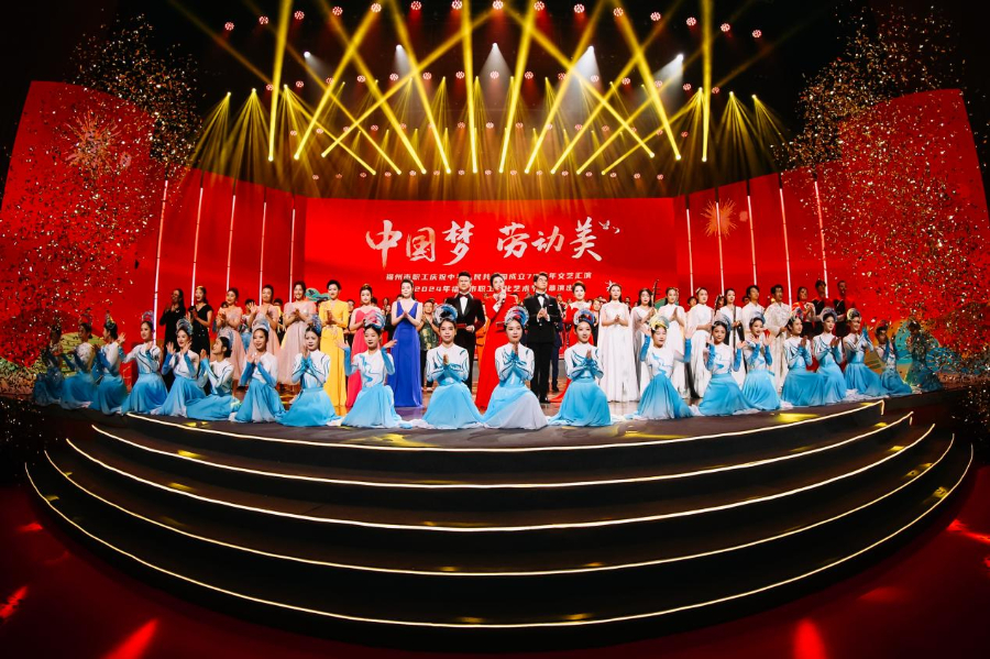 9月29日上午,“中国梦 劳动美”福州市职工庆祝中华人民共和国成立75周年文艺汇演暨2024年福州市职工文化艺术节闭幕演出在福州工人文化宫职工演艺中心举行。这是2024年福州市职工文化艺术节的收官活动,福州市各级劳模代表、各行各业职工代表以及各级工会干部代表等700余名观众到场观看。
