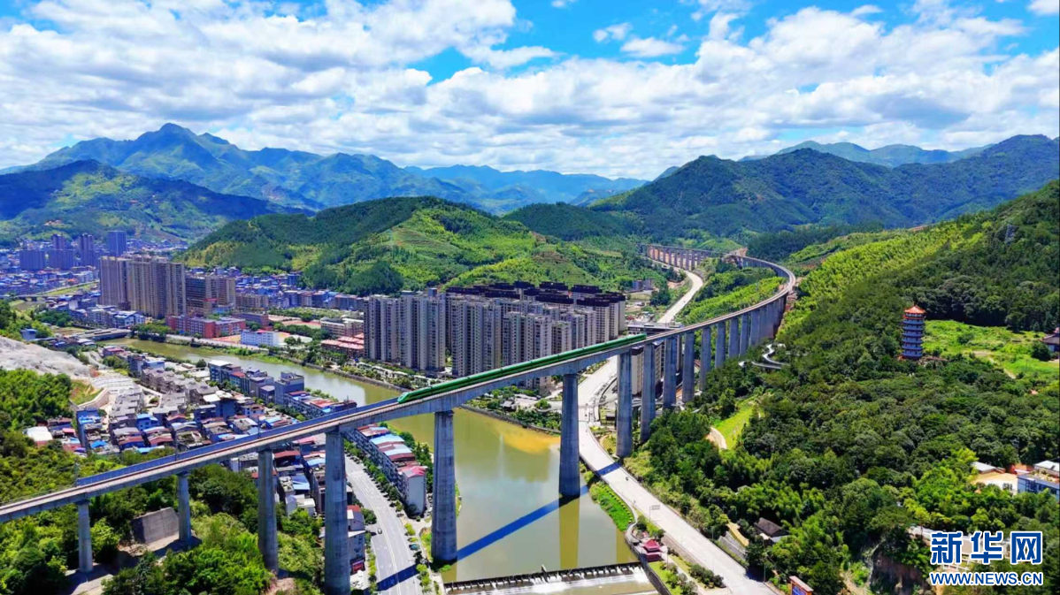 “绿巨人”动车组开往政和。新华网发(郭斯杰 摄)