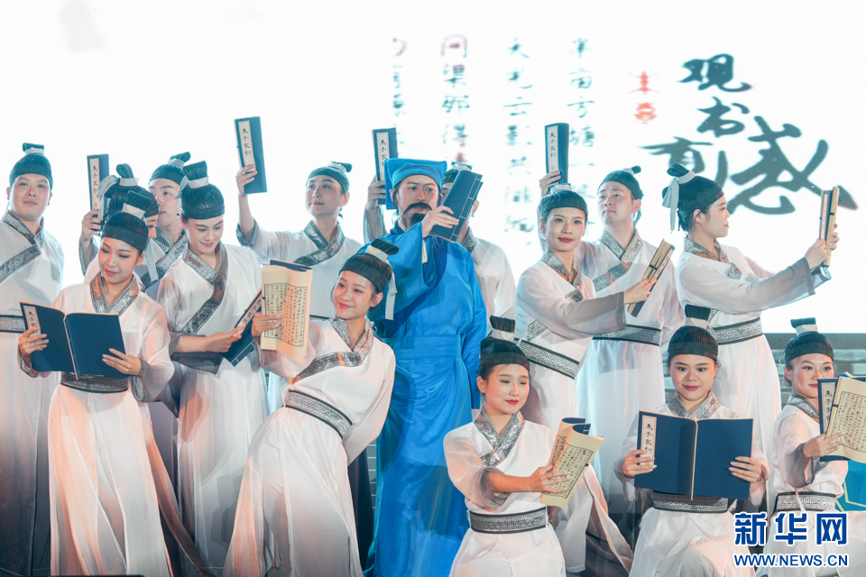 9月25日晚,演员在表演情景节目《观书有感》。新华网 肖和勇 摄