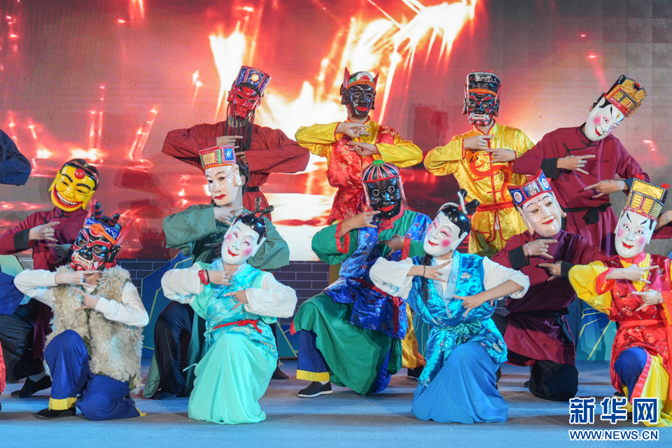 9月25日晚,演员在表演非遗节目傩舞《傩·乡影》。新华网 肖和勇 摄