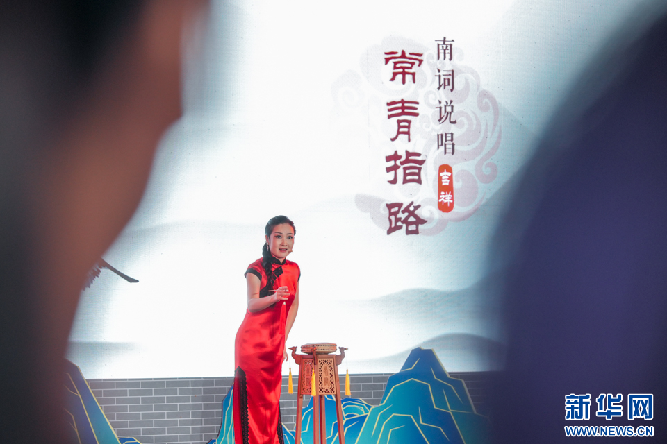 9月25日晚,演员在表演南词说唱节目《常青指路》。新华网 肖和勇 摄