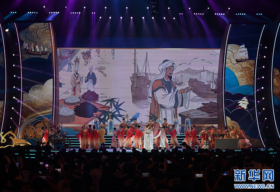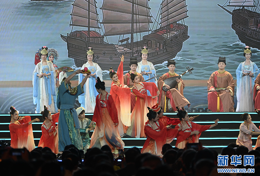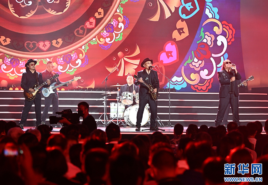 9月26日,第十二届丝绸之路国际电影节颁奖典礼现场举行的文艺表演。新华社记者 林善传 摄