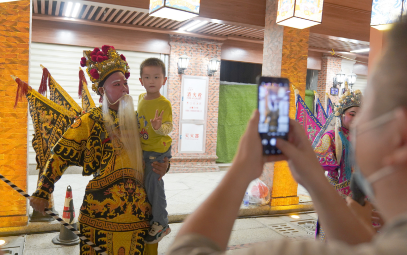 当晚,提线木偶、青狮阵、高甲戏、拍胸舞、火鼎公婆以及“宋江阵”等非遗快闪表演也轮番上演。9月30日至10月6日,中山南路还将分时段上演非遗快闪。