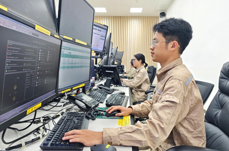 国网福州供电公司变电运维人员仔细查看自主巡检无人机回传的高清影像与数据分析报告,确保电网运行安全平稳。(王华健 摄)