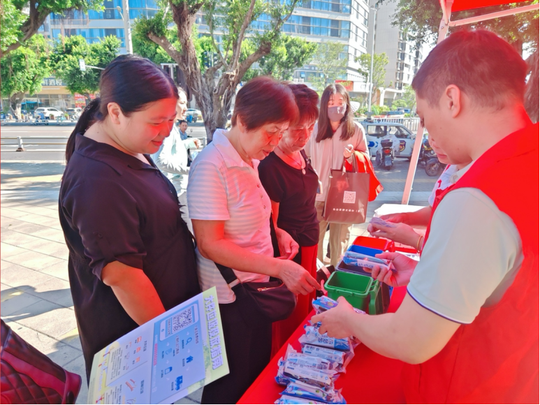 活动现场,志愿者们向过往市民发放垃圾分类指南与文明养犬手册,并结合“废旧电池属有害垃圾”“犬只粪便需分类投放”等贴近生活的实例,详细解读垃圾分类标准,让市民直观理解分类要求。