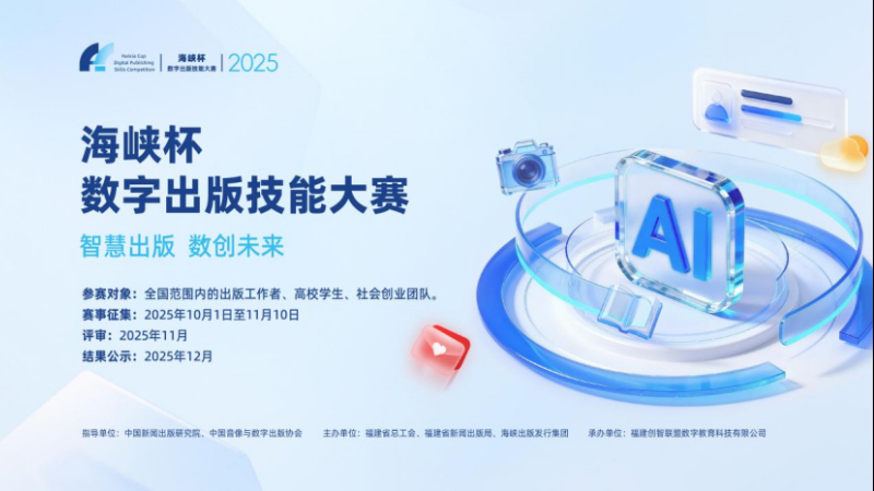 首届“海峡杯”数字出版技能大赛日前正式启动,将于10月1日至11月10日面向全国广泛征集作品。