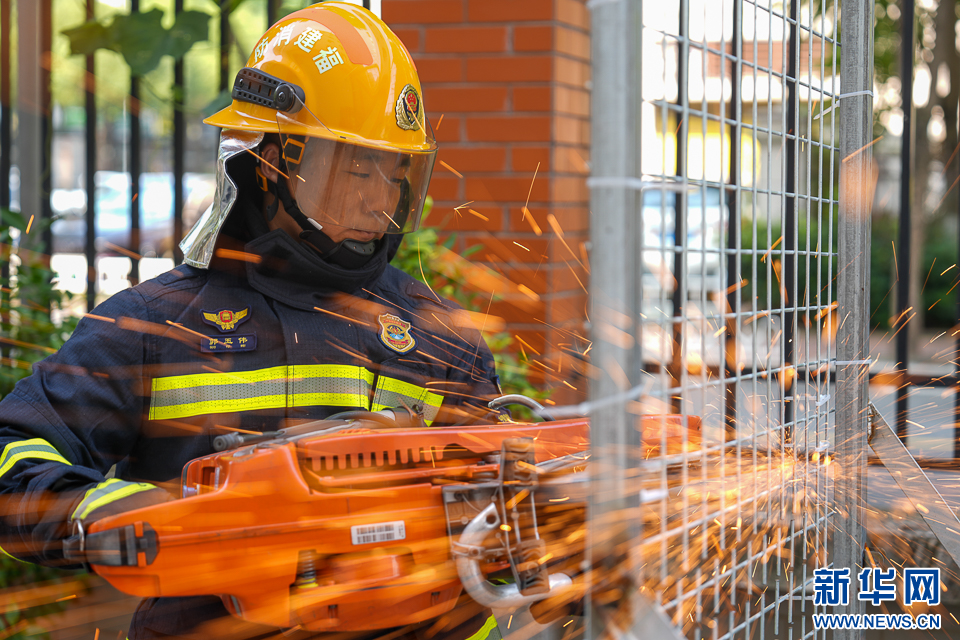 10月3日,消防员操作无齿锯进行破拆训练。