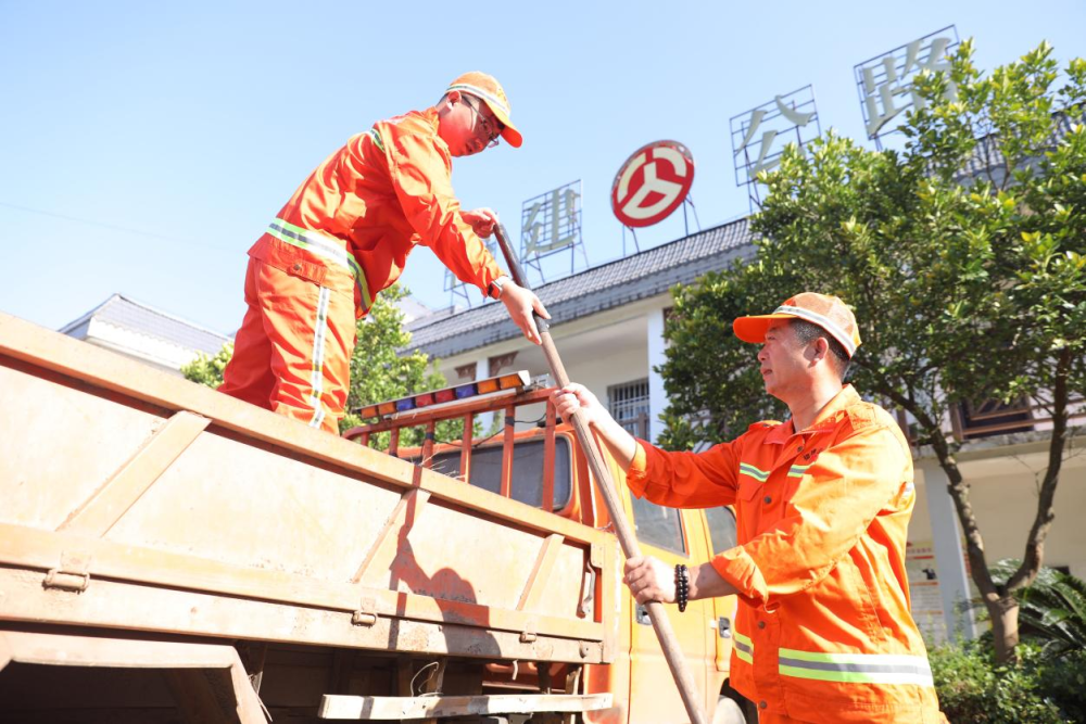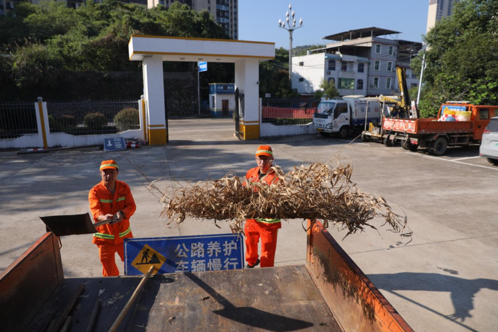 公路养护人员谢启晖(右)与郑新建准备前往国道205线(瑶坪段)作业。
