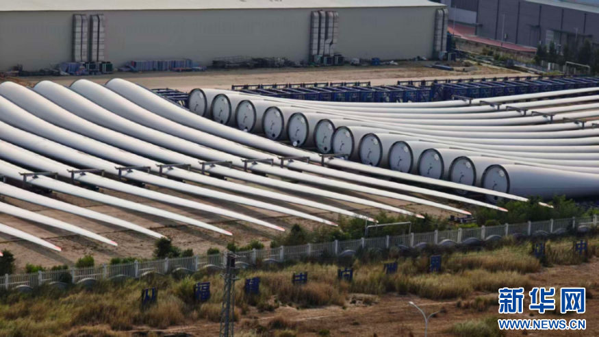 风机叶片整整齐齐排列在产业园内。新华网 刘默涵 摄