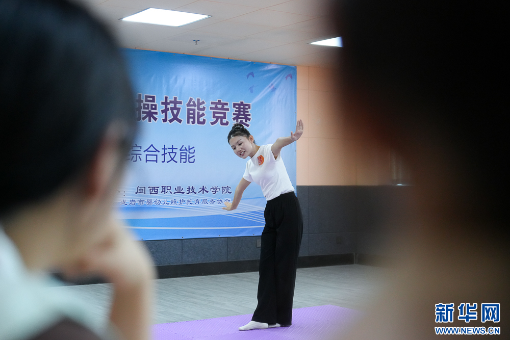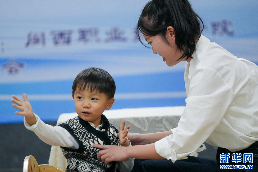 11月8日,在“婴幼儿托育综合技能”项目比赛中,选手在进行游戏活动展示。新华网 肖和勇 摄