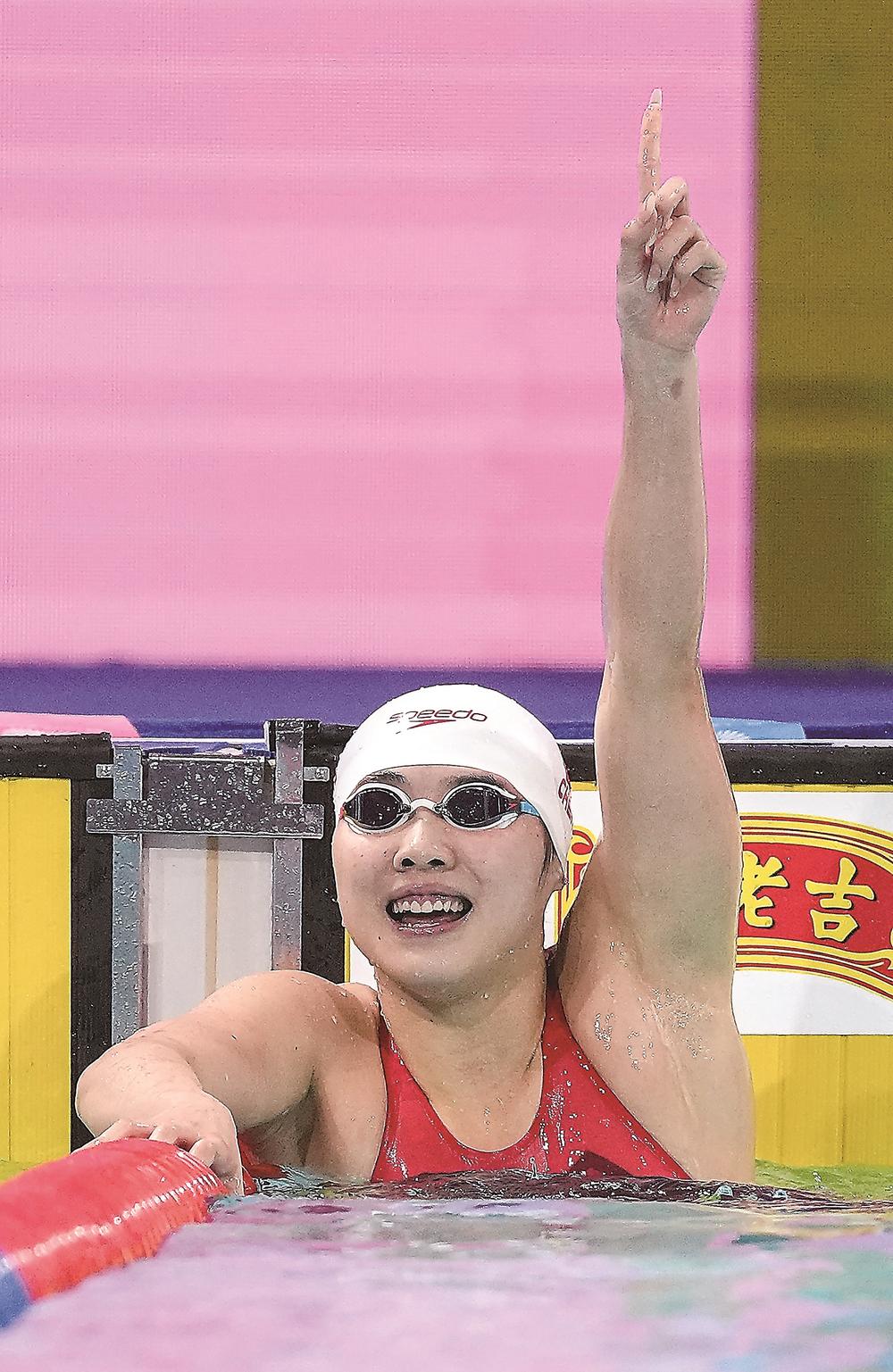 14日,陈露颖在比赛中第一个触壁。新华社