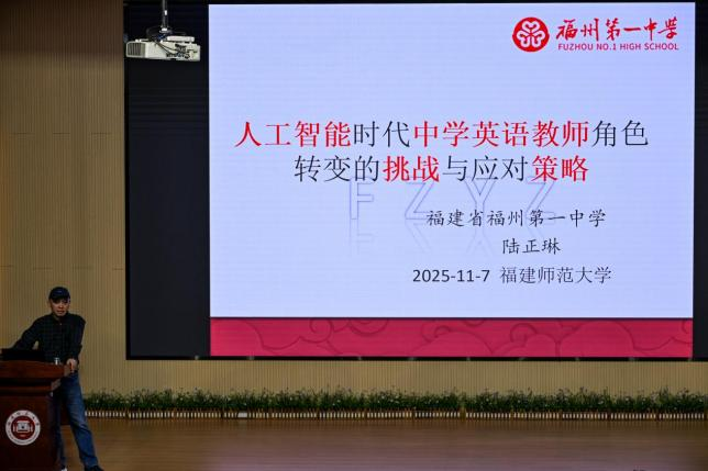 活动期间,来自教育一线的专家就AI赋能教育模式创新等议题,探讨技术如何助力“教、学、评、研”创新:福州一中英语教研组长陆正琳通过丰富案例,强调AI时代教师应立足“专业、榜样、同理心”三大核心,守住教育“人的温度”;福州华侨中学党委书记刘祯在《大中小思政一体化教学实践与思考》讲座中,深入解析英语学科视域下的思政内涵与实践路径;福建师大外国语学院党委书记林鲁文探讨在AI技术赋能下如何更高效地开展调查研究,既体现科技元素,又融入思政元素……