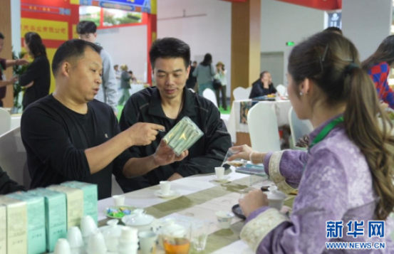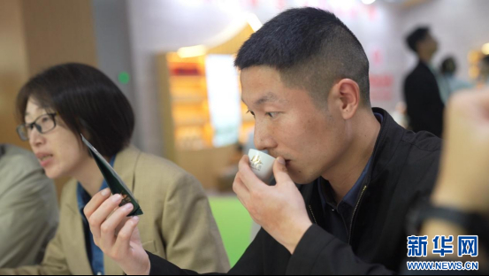 茶友在建阳小白茶展区参观品鉴。新华网发(林晨 摄)