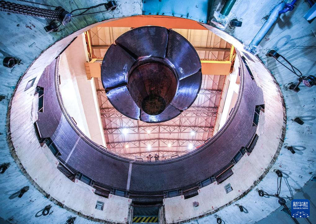 这是11月30日在检修现场拍摄的5号机组发电机坑。新华社记者 周义 摄