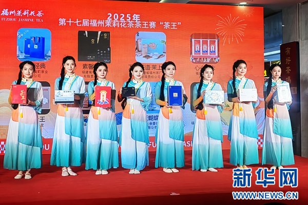 获得2025年福州茉莉花茶茶王赛“茶王”称号的产品。新华网 程立葳 摄