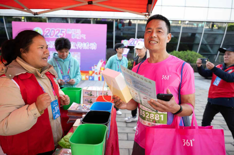12月14日,2025福州马拉松比赛举行。同期,由福州市环卫中心、仓山区环卫中心联合主办的2025年福州市“清新闽都,绿色奔跑”垃圾分类主题宣传活动在福州海峡会展中心举办。活动以马拉松赛事为创新载体,将绿色环保理念植入全民健身热潮,推动垃圾分类知识从“纸上”走向“实处”。