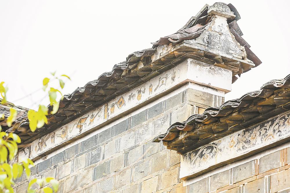21日,武夷山市下梅村古民居用岩彩绘成的装饰纹案,历经岁月洗礼,依旧保有鲜艳的色泽。
