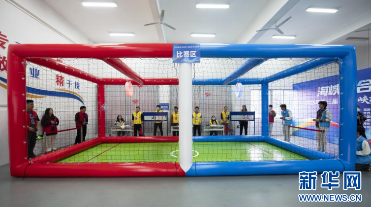 遥控杆为足,无人机化球,福建上演无人机“攻防战”。第三届“海峡杯”福建省无人机足球大赛25日在福州落幕,赛事吸引了全省近百名中小学及高校青少年同台竞技。