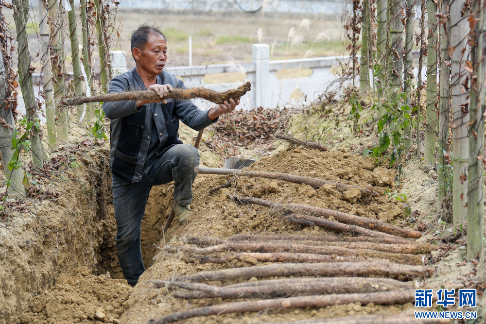 1月5日,德化县龙浔镇英山村,农户在采挖淮山。新华网 肖和勇 摄
