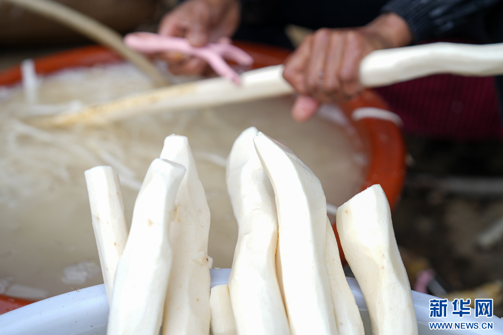 1月5日,德化县龙浔镇英山村,农户对淮山进行削皮处理。新华网 肖和勇 摄