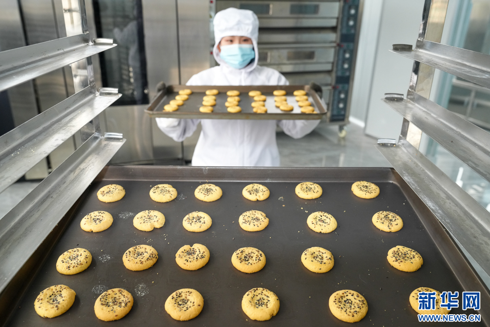 这是淮山做成的酥饼。“金融活水”助力当地企业推出淮山特色美食,提升产品附加值(1月5日摄)。新华网 肖和勇 摄