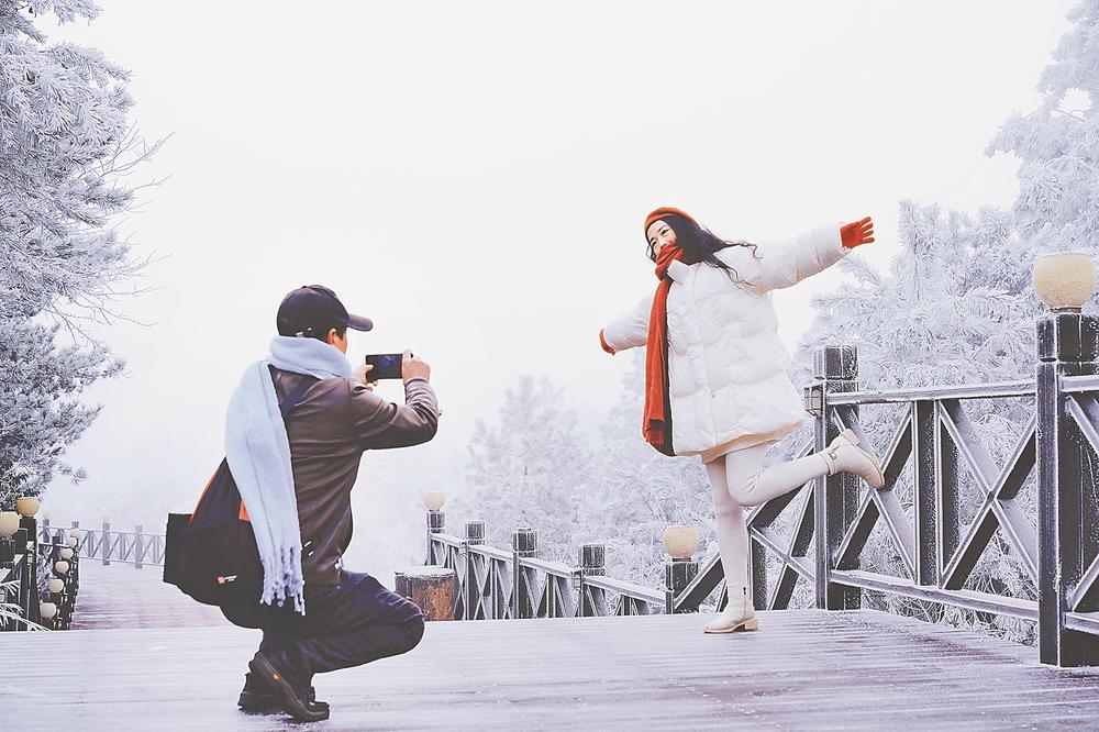 6日,受强冷空气影响,泰宁县峨嵋峰迎来雾凇美景,漫山枝条被剔透冰凌包裹,冰晶在风中簌簌作响,南国山间尽显北国风情。不少游客踏着薄霜登山,或驻足观赏,或拍照留念,将这短暂的冬日美景定格。(记者 庄紫怡 通讯员 张显超 李广 摄影报道)