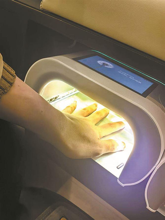 照灯前30分钟在手部涂抹足量防晒霜(SPF30+,PA+++以上),重点覆盖甲缘、指关节等易忽略部位;若单次照灯时间较长,建议中途补涂一次。(文/图 记者 杨霞瑜)