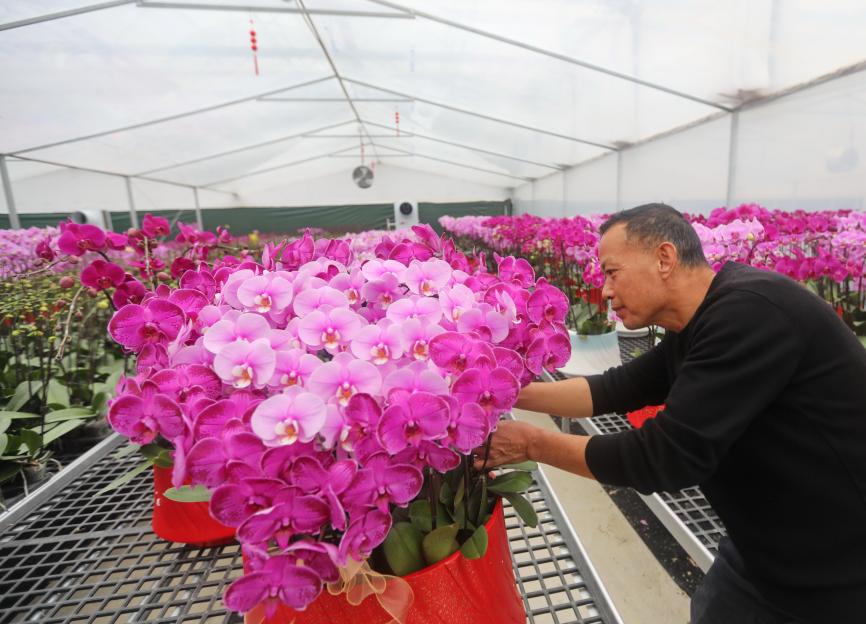 春节临近,花卉市场迎来消费旺季,寓意吉祥的年宵花成为市场热销品。1月21日,位于连城县莒溪镇的兰沁园花卉产业园的蝴蝶兰种植智能温室内一派繁忙景象:一盆盆蝴蝶兰姹紫嫣红、花姿雅致,工人们正有条不紊地进行造型设计、打包装箱。