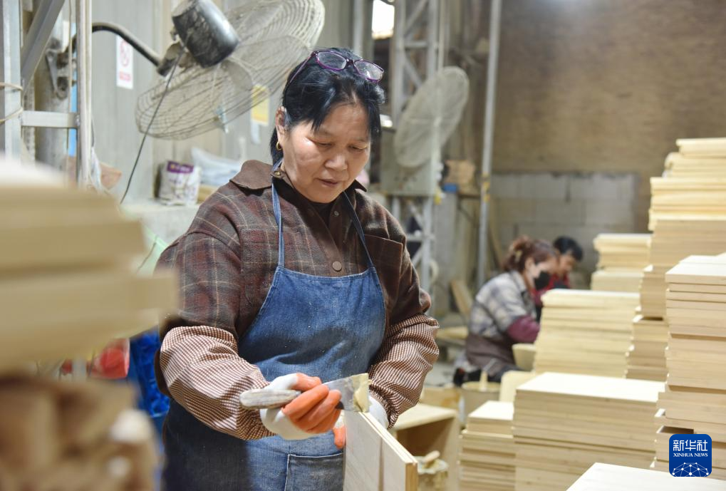 在福建品匠茶居科技有限公司车间里,一块块竹板经过切割、打磨、组装、上漆等工序,被加工成竹桌椅、竹衣柜等产品。春节后复工以来,工人们加紧生产、赶制订单。