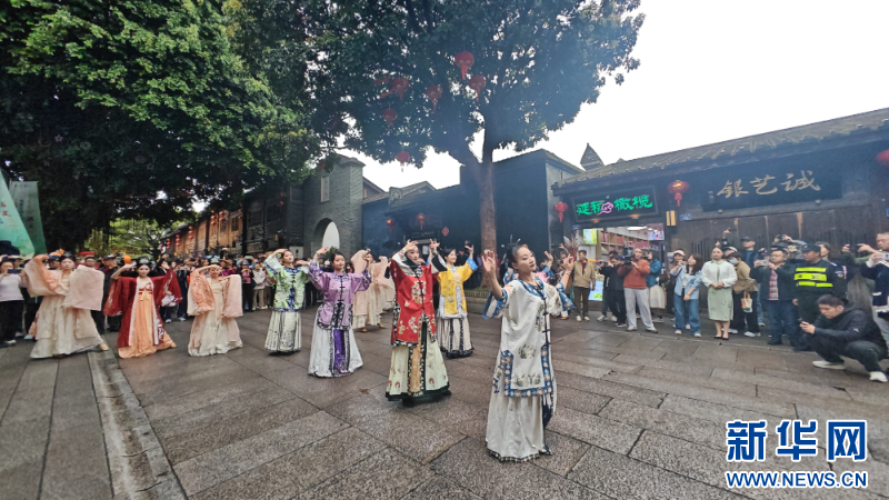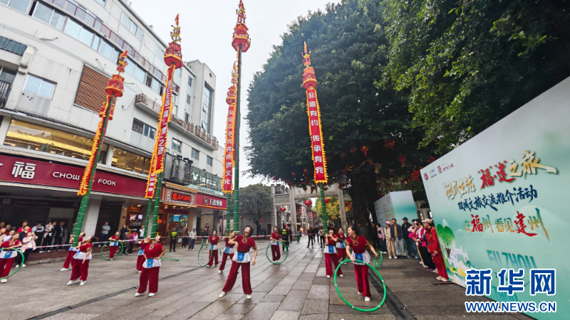 建瓯挑幡亮相福州三坊七巷,以刚劲有力的技巧演绎,彰显“千年建州”非遗风采。新华网 刘丰 摄
