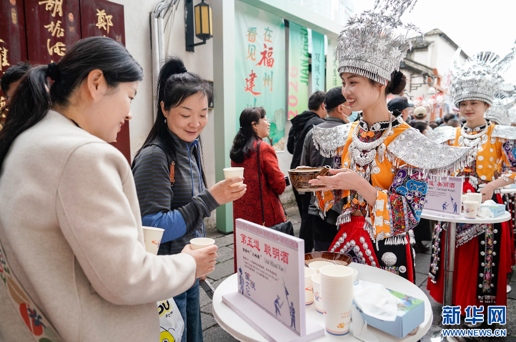 市民游客在黄巷品尝建瓯特色米酒。新华网 蒋巧玲 摄