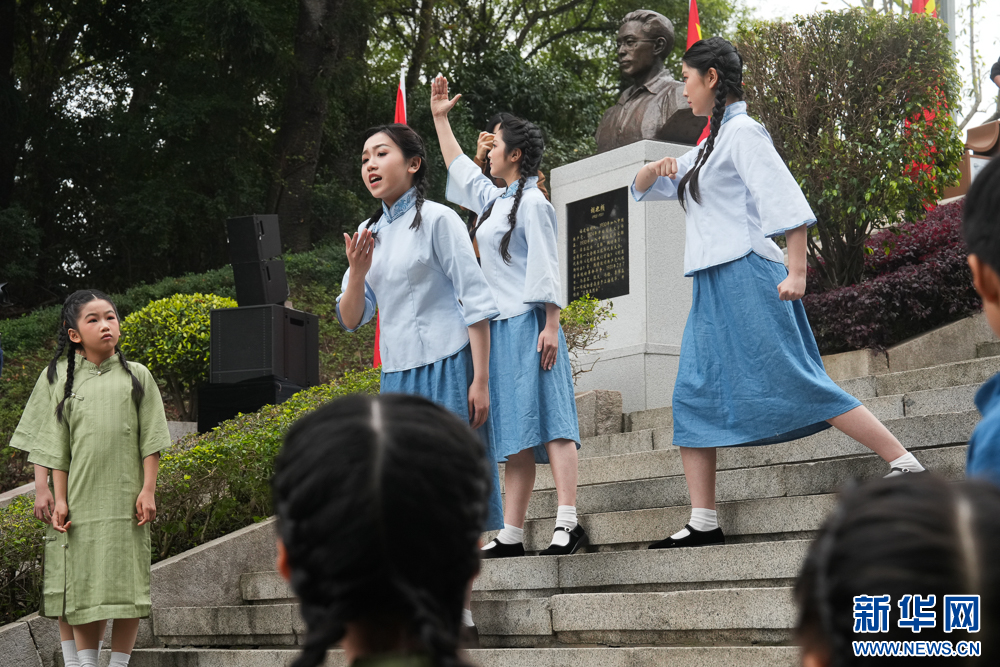 3月29日,演员在“铁血铸魂”篇章中演唱红色主题歌曲(无人机照片)。新华网 肖和勇 摄