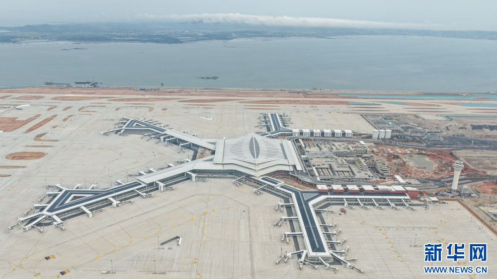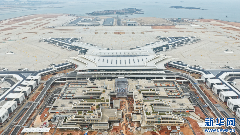 这是建设中的厦门翔安国际机场。画面由近及远为:交通中心及酒店、T1航站楼、指廊、停机坪等(3月31日摄,无人机照片)。新华网 肖和勇 摄