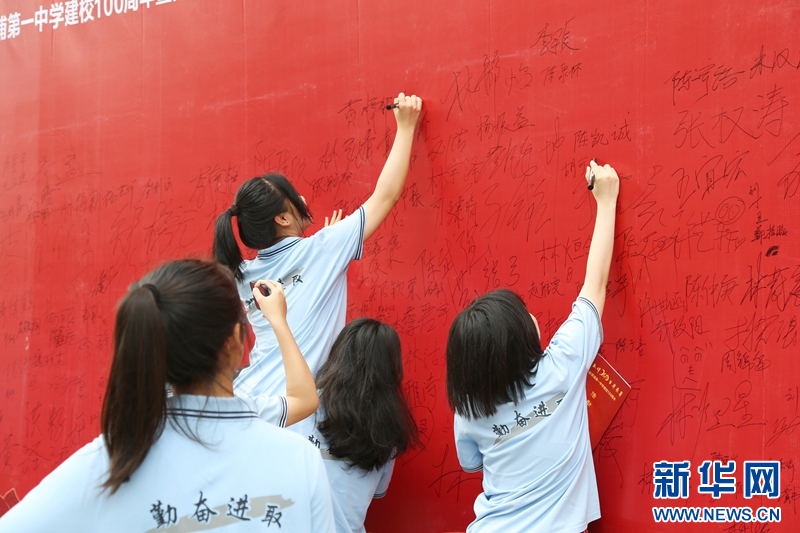 校友们在签名板上签名。新华网发(漳浦县融媒体中心供图)