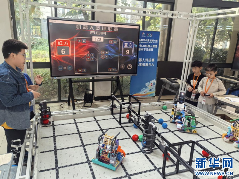 “3、2、1,开始!”机器人对抗赛现场,红蓝双方选手通过自主编程与人机协同,操控机器人完成投篮、攻防转换等动作。