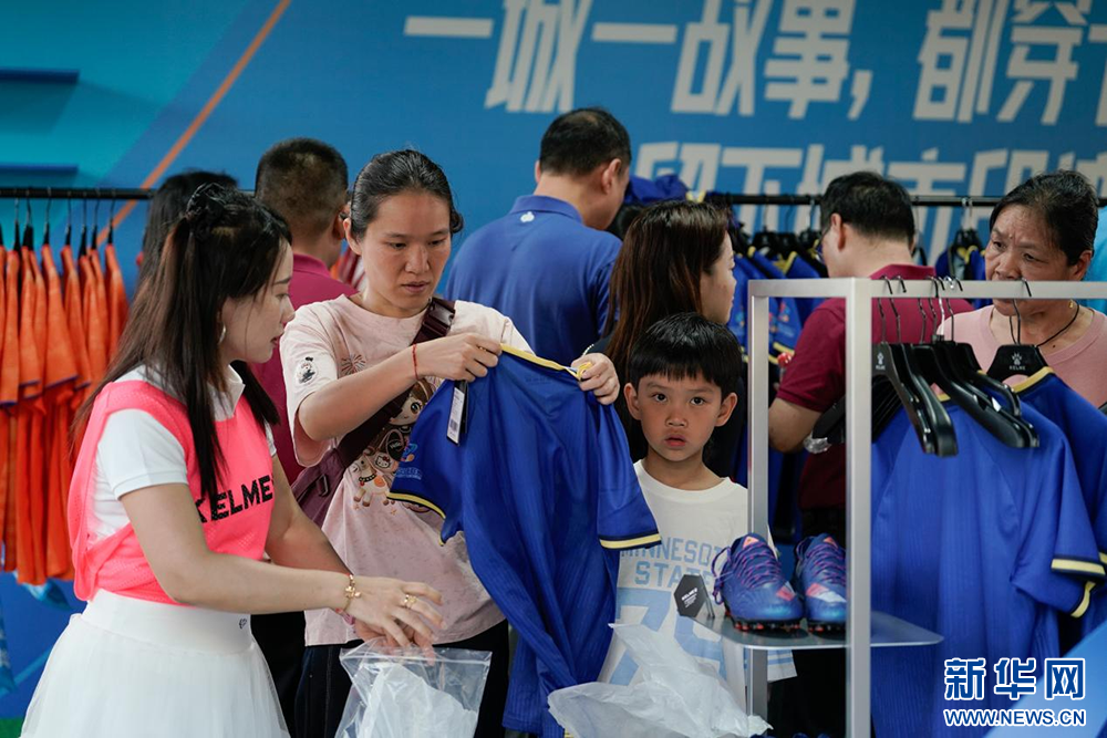 市民游客在“闽超”官方商品售卖店选购福州队球衣。新华网 蒋巧玲 摄