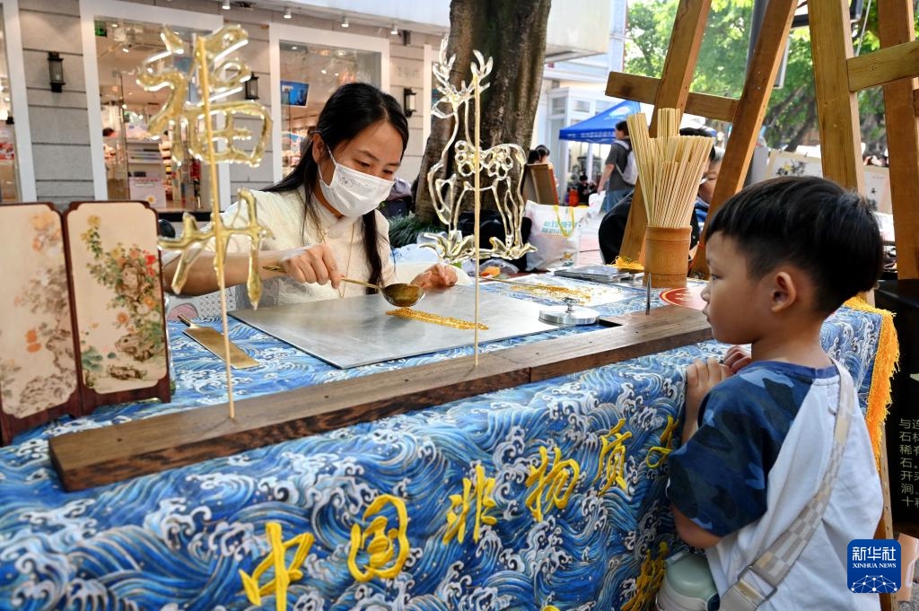 4月25日,小朋友在2026福州“五一”文旅主题活动现场观看糖画技艺展示。新华社记者 林善传 摄