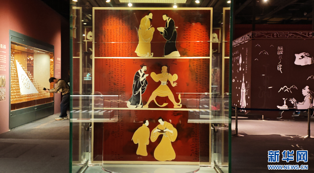 孔子徒人图漆衣镜镜匣(仿制品),是迄今所见最早的孔子形象实物。新华网 刘丰 摄