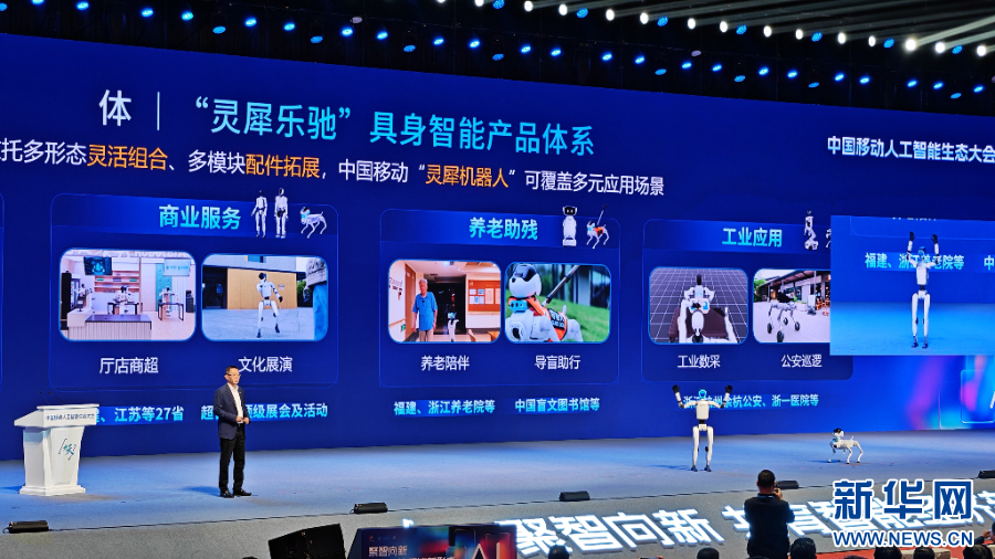 大会现场,中国移动正式发布智能服务矩阵及智能服务产业协同倡议。在智能服务推介环节,“九天”安全可信大模型、“灵犀乐驰”网联机器产品矩阵、移动钱包AI付等一系列服务及产品逐一亮相,充分展现了中国移动在智能服务领域的技术积淀与应用实力。