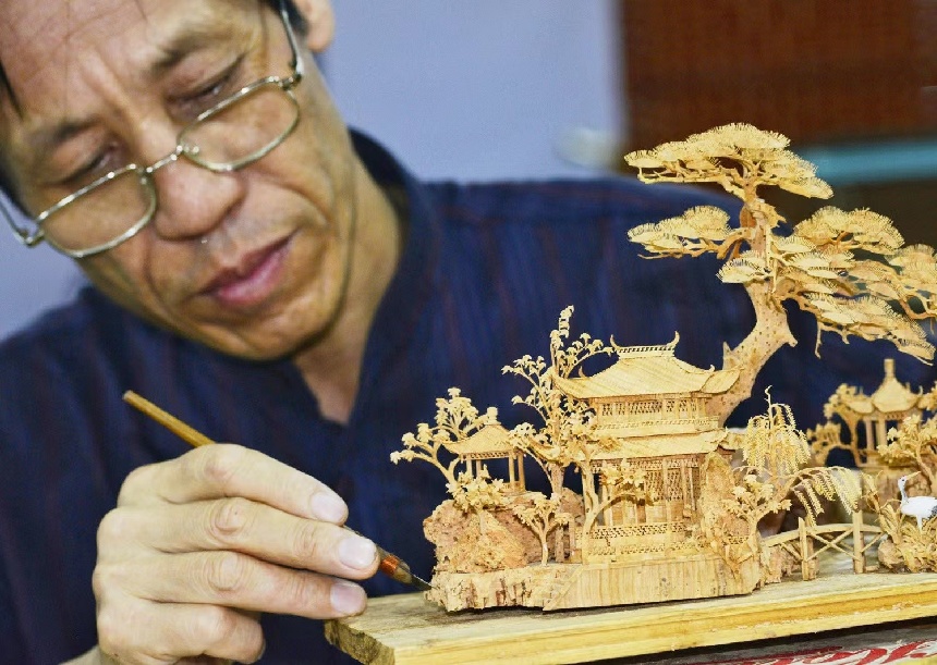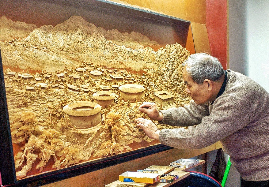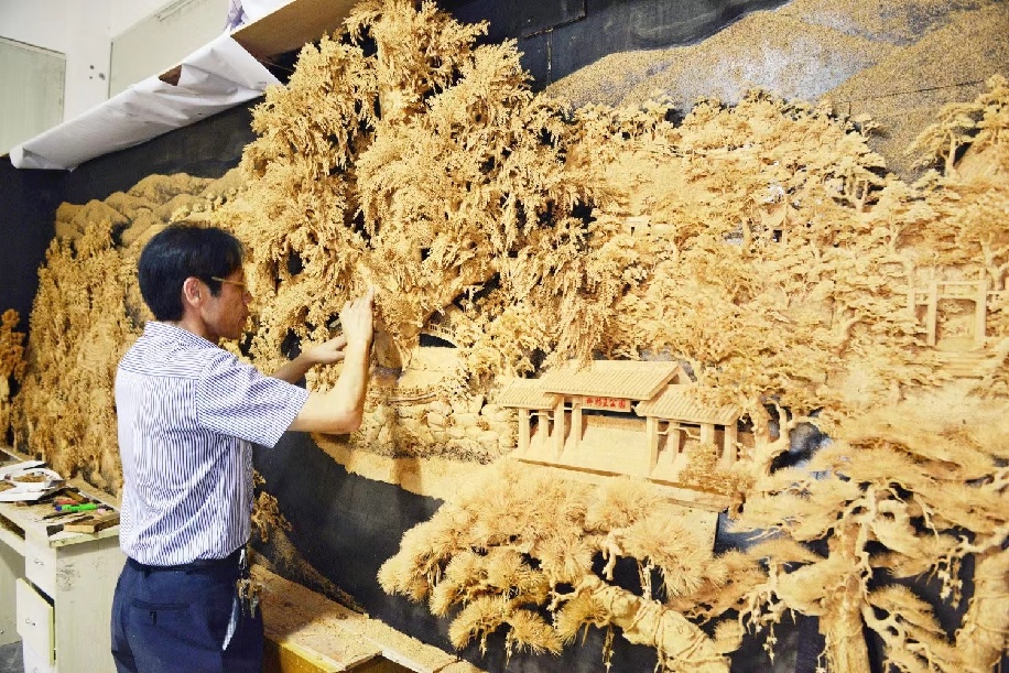 软木画通过“以小观大,缩龙成寸”的技艺,达到“丛山数百里,尽在一框中”的艺术效果,被海外誉为“东方艺术珍品”。张旭阳/摄