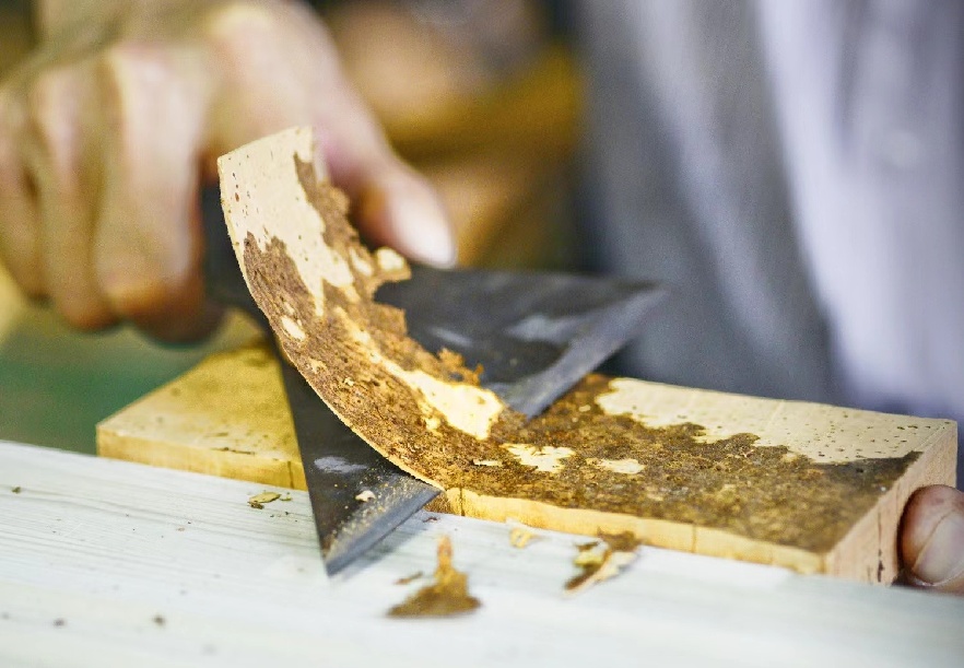 软木画对主材料软木的选择十分严格,主要采用由葡萄牙等国家进口的栓皮栎木树的栓皮层,因为它的材质细密柔软、富有弹性,有不透气、不透水、不易燃、抗腐蚀、耐磨等优点,且表面有细密的天然纹样和针孔大小不等肌理,比较适合切削成薄片状材料进行造型刻画。
