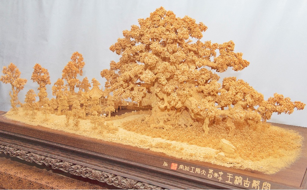 福建省级非遗传承人吴传福创新圆雕软木画作品《闽韵古榕王》。张旭阳/摄